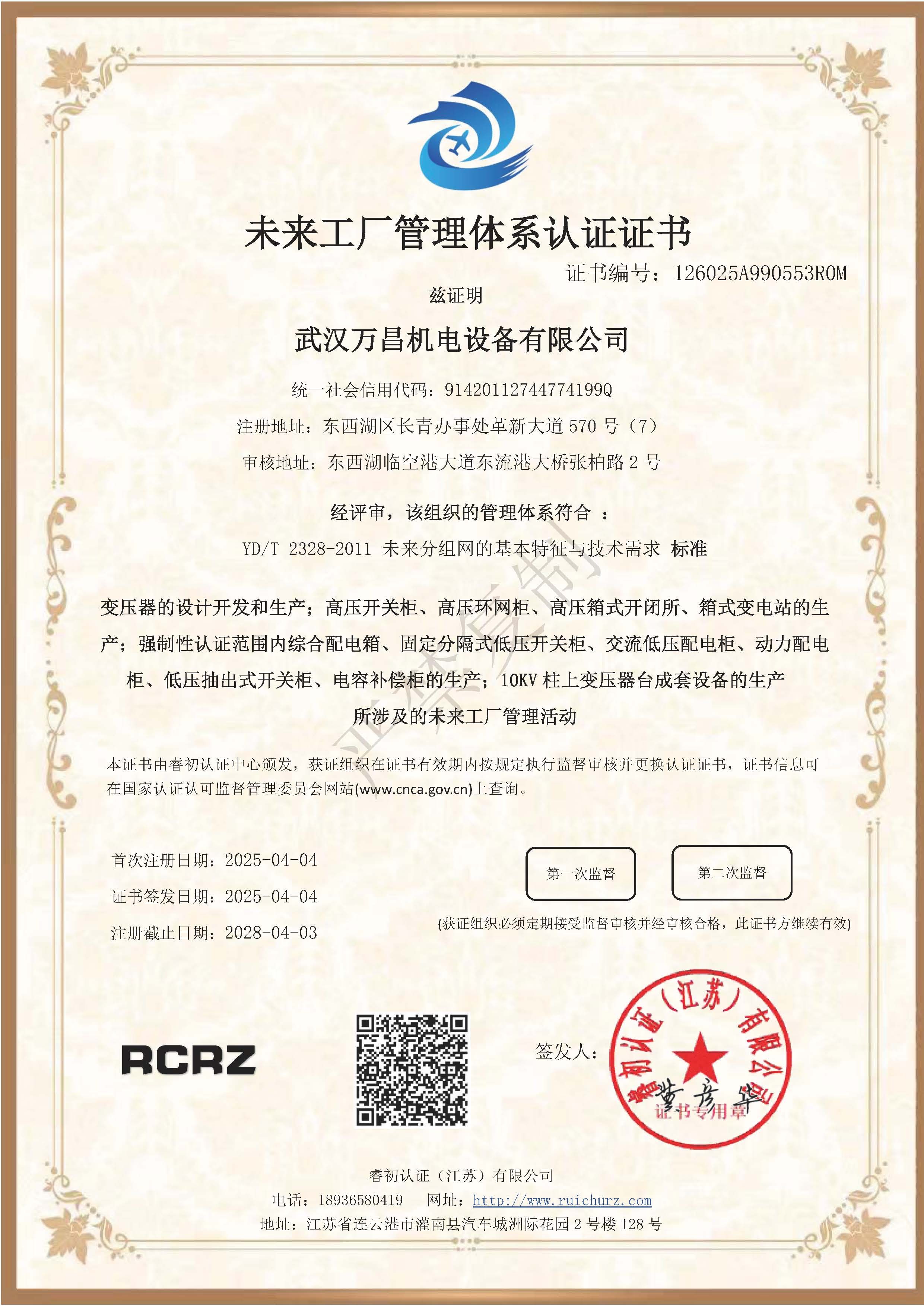 未來工廠管理體系認證證書